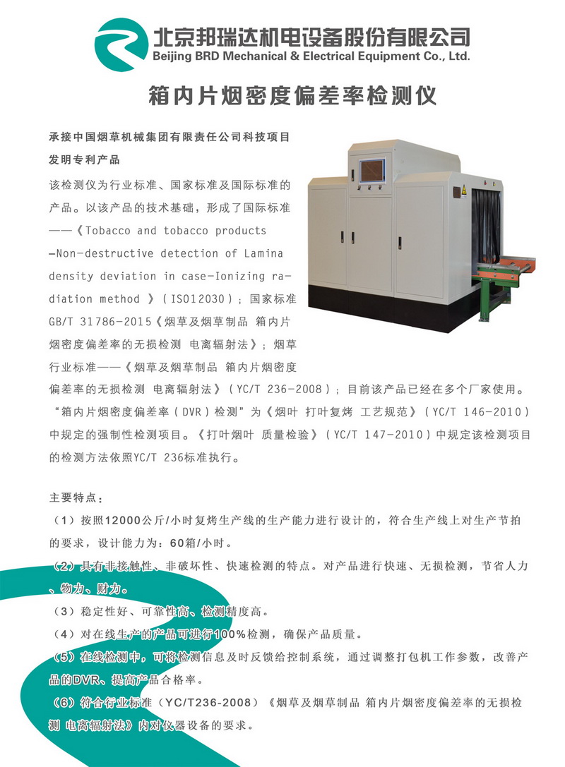 | 箱內(nèi)片煙密度偏差率檢測儀介紹資料 | |